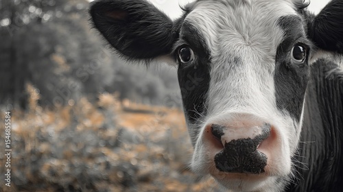 Close up portrait of a black and white cow farm animal dairy cow livestock agriculture animal face bovine