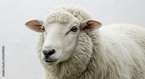 Close up Portrait of a Fluffy White Sheep Farm Animal Wool Texture