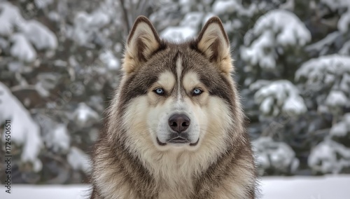dog, husky, siberian, animal, canino, pet, mammal, wolf, fur, coat, blue, eye, face, portrait, head, cute, beautiful, domestic, friends, companion, loyalty, winter, snow, cold, weather, season, frost, ice, glacé, outdoors, nature, wildlife, forest, tree, fluffy, thick, grey, black, pattern, breed, purebred, working, sled, friendly, intelligent