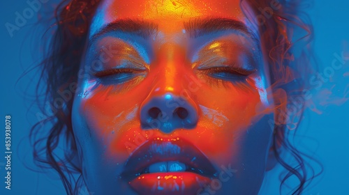 portrait, woman, face, eye, closed, red, light, blue, lighting, dramatic, colourful, peace, introspection, close, beauty, skin, glowing, feminine, aethereal, soft, abstract, artistic, surreal, digital, art, photo, artwork, inspiration, mood, emotion, feeling, expression, style, creative, aesthetic, imagery, visual, contemporary, modern, design, graphic, communication, media, multimedia, online, social, culture, fine, history
