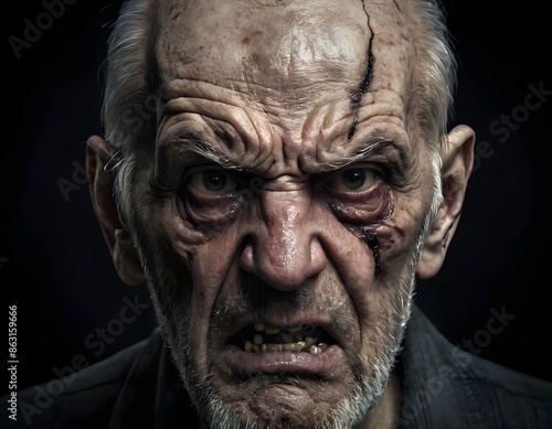 angry, elderly, man, portrait, closeup, grey hair, black shirt, wrinkled, face, eye, open, rage, dark, intense, emotion, expression, anger, frustration, upset, furious, yelling, shouting, scream, old man, senior, facial expression, digital artwork