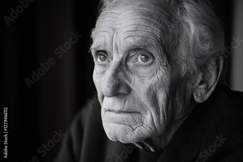 portrait, black-and-white, wrinkle, ageing, skin, texture, elderly, old age, wisdom, time, life events, face, closeup, monochrome, dark background, thoughtful, contemplative, loneliness, solitude, mature, aging process, life, year, generation, retiree, grandfather, grandparent, male, person, man, expression, serious, health care, geriatric, fine art, skincare
