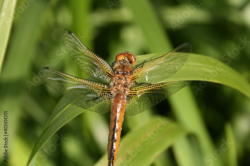 Closeup dragonfly on a green plant