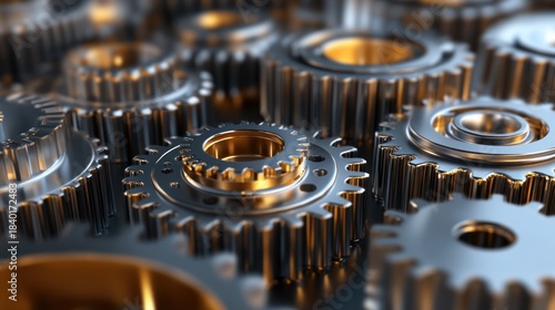 gear, machinery, metal, closeup, industrial, precision, engineering, technology, mechanism, complex, interlocking, interconnected, movement, motion, power, rotation, transmission, detail, structure, system, metallic, shiny, gold, bright, background, focused, perspective, close, assembly, smooth, solid, modern, mechanical, intertwined, rotating, engineered, precise, assembled, hard-wearing, powerful, functional