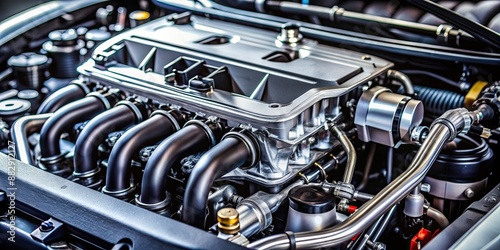 Close-up image of a car engine head, engine, motor, vehicle, mechanical, automobile, parts, technology, automotive