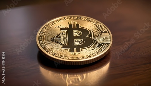 Close-up of a bitcoin coin, copy space. World cryptocurrency. The financial system of the future