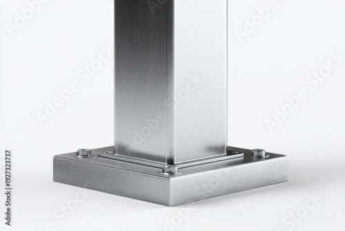 metal, brushed, steel, aluminium, post, footed, column, support, structure, building, architecture, modern, industrial, construction, hardware, fastener, screw, bolt, fixture, mounting, secure, stable, strong, hard-wearing, material, texture, surface, shiny, reflective, clean, minimalist, geometric, square, corner, detail, closeup, macro, studio, isolated, white, background, engineering, component, element, part, equipment, machinery, technology