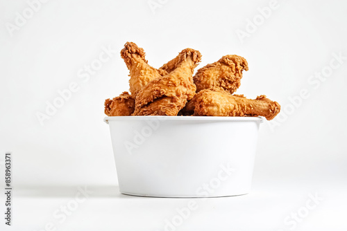 fried, chicken, bucket, crispy, gold, brown, delicious, food, snack, dinner, fast, take-away, eatery, meal, white, background, closeup, isolated, fresh, juicy, crunchy, appetising, savoury, tempting, grease, oil, fat, protein, meat, poultry, leg, leg, wing, plastic, container, cardboard box, lunch, breakfast, side, dish, american, comfort, junk, unhealthy, calorie, indulgence, treat, celebration