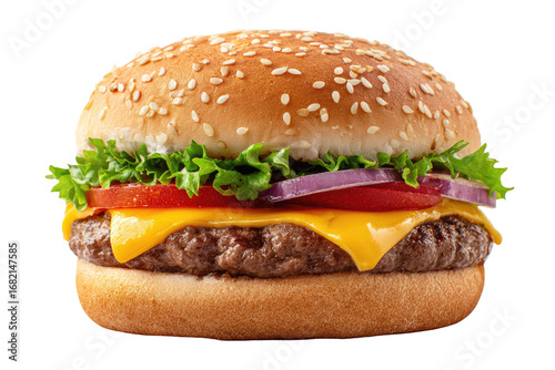 burger, cheese, meat, tasty, food, delicious, sandwich, fast food, lunch, dinner, hot, fresh, deliciously, beef, onion, tomatoes, lettuce, bun, sesame, gold, brown, cooked, flavorful, savoury, mouth-watering, appetising, homemade, simple, classic, american, food photography, closeup, isolated, studio, light, image, ready, eat, foodstuff, junk food, carb, protein, alimentary, energy