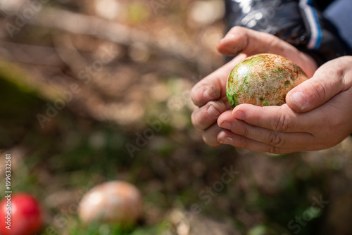 easter, children, egg, hand, spring, holiday, natural, tradition, rustic, closeup, holding, dyed, organic, seasonal, culture, celebration, hand-made, texture, brown, green, nature, detail, macro, childhood, simple, authentic, folk, heritage, symbol, renewal, april, countryside, calm, peaceful, warm, earthy, background, sharpened, innocence, craft, decorative, rural, food, hand