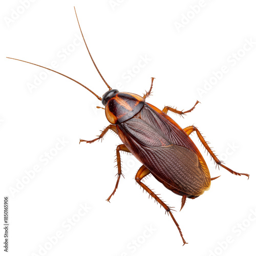 Close-up of a detailed cockroach on a transparent background showcasing its anatomy and textures