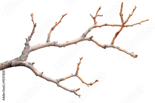 Close-up of a dry tree branch isolated on a transparent background. perfect for nature and organic-themed designs and projects.