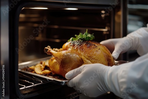 oven, cooking, chef, hand, glove, white, food preparation, poultry, thanksgiving, christmas, dinner, receipe, kitchen, professional, delicious, appetising, meal, closeup, food photography, rotisserie, meat, epicure, grill, baking, health food, eatery, cookery, preparing, bakery, safety, fresh, healthy, christmas dinner, closeup
