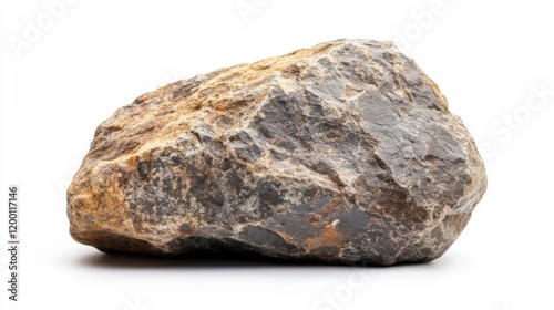 Close-up of a Gray and Brown Stone, Rough Texture, Isolated on White Background
