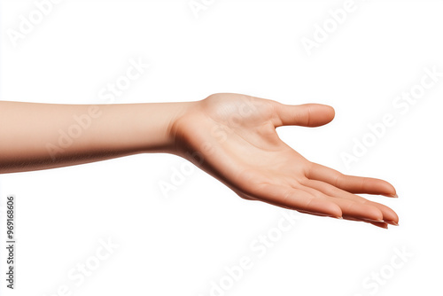 Close-up of a hand reaching out to touch something, isolated on a white background
