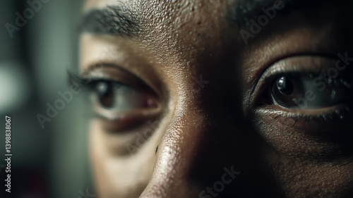 eye, face, closeup, skin, texture, eyelash, human, person, portrait, detail, lighting, intensity, sharpened, gaze, look, dark, dramatic, eyebrow, macro, vision, expression, complexion, facial features