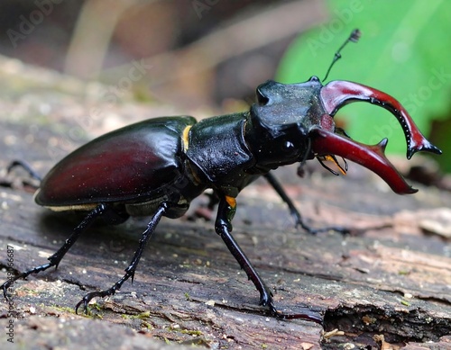 beetle, insect, forest, nature, macro, wildlife, animal, log, wood, closeup, detail, black, red, green, brown, large, strong, powerful, antler, jaw, insect, fauna, beauty, detail, environment, amazing