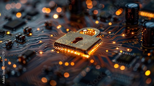 Close-up of a lock icon symbolizing secure cybersecurity measures, Generative AI