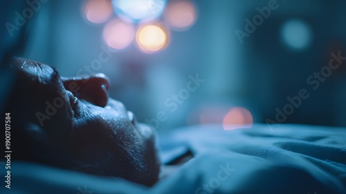 face, sleep, dream, night, blur, light, dark, close, profile, rest, quiet, peace, calm, serene, still, soft, sharpened, texture, shadow, depth, emotion, thought, mind, consciousness, unconscious, body, human, person, individual, portrait, head, eye, nose, mouth, skin, wrinkle, age, health, disease, hospital, medicals, care, treatment, patient, doctor, surgery, anaesthesia, recovery, death