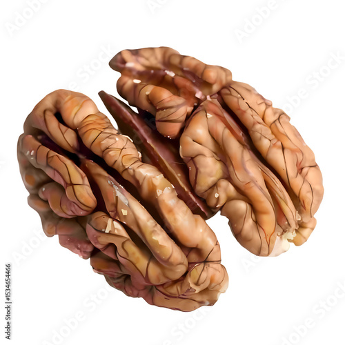 Close-up of a Shelled Pecan Half on Black Background Showcasing Intricate Texture