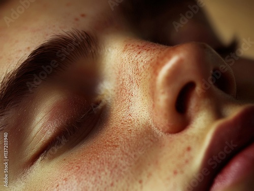 Close-up of a Sleepy individual drifting off, with soft lighting emphasizing the relaxation and comfort