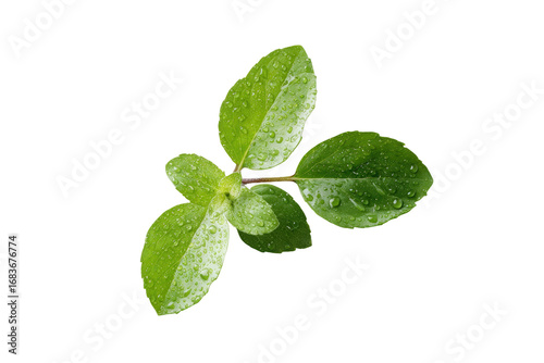Close-up of a small sprig of vibrant green leaves