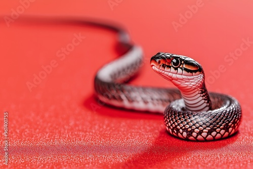 Close-up of a snake on a striking red background. Year of the Snake background.