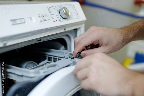washing, machine, repair, technician, hand, men at work, appliance, service, maintenance, tool, fixing, mechanic, equipment, household, laundry, engineering, technical, profession, labor, work, industry, technology, domestic, repairman, skill, manual, diagnostic, breakdown, malfunction, restoration, workshop, utility, home, expertise, screw, metal, panel, control, wiring, electric, professional, craft, troubleshooting