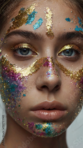 Close-Up of a Teen’s Face Covered with Face Paint or Glitter