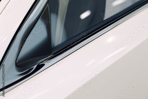 Close-Up of a White Car's Window and Chrome Trim, Representing Automotive Innovation and Transportation Technology : Generative AI