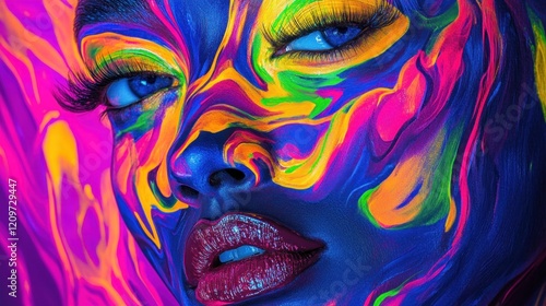 Close-up of a Woman's Face with Neon Makeup