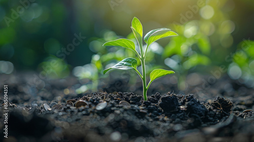 Close-up of a young plant sprouting from the soil, symbolizing growth and new beginnings in nature.