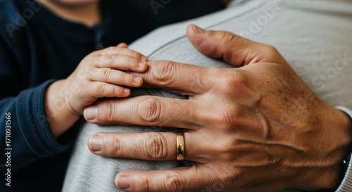 hand, baby, male, wedding, touch, connection, father, children, caucasian, intimate, finger, care, love, tenderness, family, bond, ring, skin, eltern, support, affection, comforting, protective, warm, gentle, nurturing, interaction, emotion, detail, human relationships, security, peaceful, softness, hugs, trust, closeness, life, oneness, generation, palm