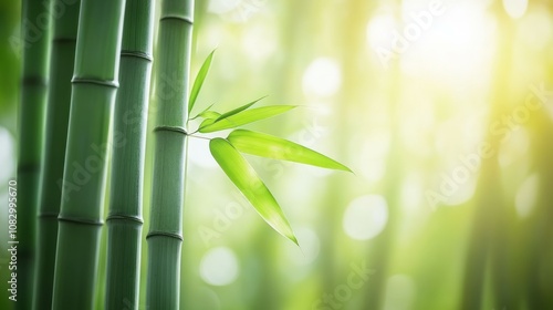 Close-up of bamboo forest, centered composition, natural artistic conception, with green as the dominant color and soft lighting