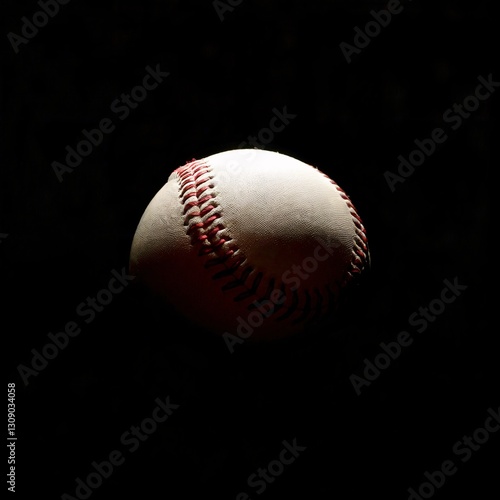 baseball, sport, ball, closeup, black background, stitching, spotlight, texture, sphere, competition, game, athletic, recreation, equipment, team sport, hobby, leisure, sharpened, training, shadow, minimalist, symmetry, design, object, contrast, simplicity, clean, isolated, single object, darkness, symbolic, artistic, action, movement, classic, tradition, youth, sport, round, black, leather, athletic, hardball, closeup, pitch