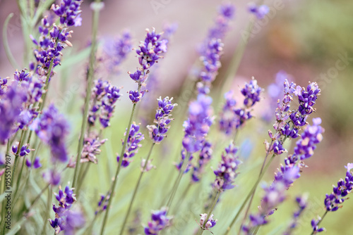 Close-up of blooming lavender flowers in soft natural light
