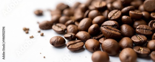 Close-up of coffee beans, various textures, white background, light, background, ingredient
