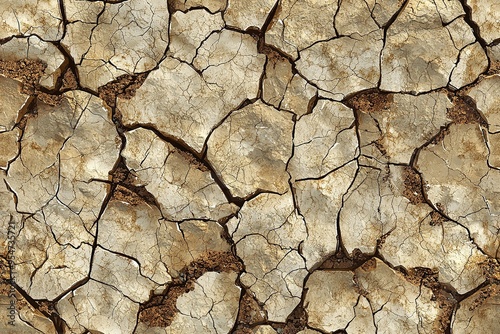 Close-up of cracked dry earth showing effects of extreme drought and environmental stress. Climate change environmental degradation and agricultural challenges.
