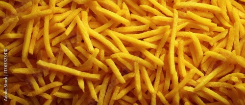 Close-Up of Crispy Golden French Fries Filling the Frame, Overhead Shot, Studio Lighting, Delicious Snack, Fast Food Treat