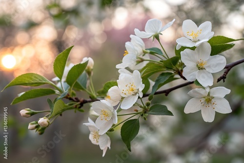 flower, spring, nature, closeup, tree branch, green leaf, blooming, flora, beauty, outdoors, flower petals, seasonal, sunlight, vibrant, fresh, floral, delicate, botany, natural, scenic, peaceful, garden, tranquil, growth