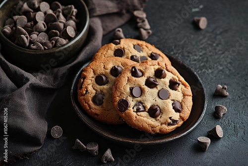 Close-up of Delicious Chocolate Chip Cookies on a Plate