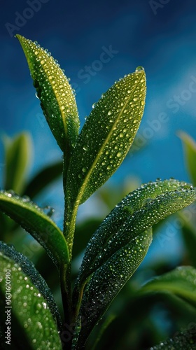 leaf, dew, water, green, fresh, plant, tea, germinating, nature, vibrant, closeup, detail, drop, lush, young, bud, growth, morning, morning dew, detail, freshness, beauty, bright, clear, healthy, foliage, soft, texture, sparkling, flora, hydratation, ecology, tea leaf, macro, green leaf
