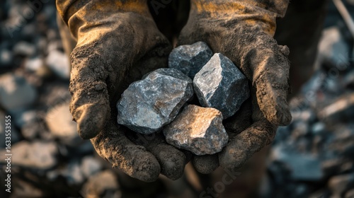 hand, dirty, stone, rock, gravel, earth, construction, work, labor, holding, glove, dirt, rough, gritty, grey, light, dark, material, industrial, excavation, mining, nature, closeup, detail, texture, building, construction site, manual, labourer, workplace, environment, grit, worn, aged, hard, tough, powerful, strength, skilled, sharpened, natural, earthly, resource, extraction, collection, puckered, close, cupped
