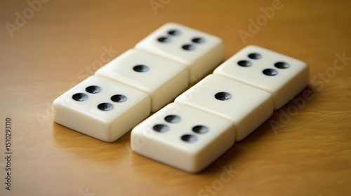 Closeup of Dominoes on Wooden Table Game Pieces