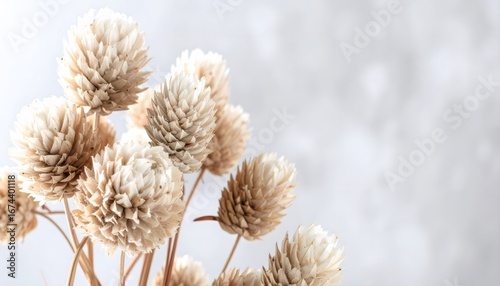 Close-up of Dried Globe Amaranth Flowers Against White Background.