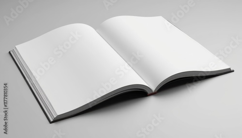 Close-up of editorial magazine mockup on neutral background, open to showcase cover and page, focus on design