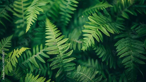 Close-up of fern fronds with intricate details, rich green tones, and natural elegance