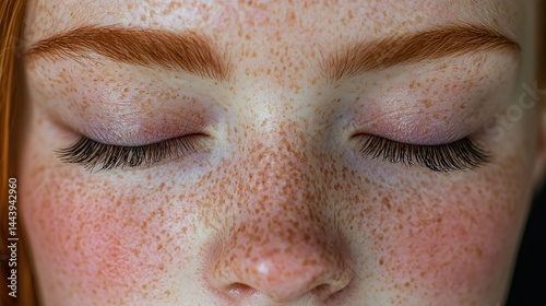 freckled, face, eye, closed, skin, beauty, redhead, freckle, natural, make-up, lash, woman, closeup, portrait, skincare, healthy, glowing, rose colored, pigmentation, freckle, cosmetic, natural beauty, skincare, young, girl, model, brow, eyelash, nose, lip, lip, feature, eyeshadow, fresh, natural makeup, complexion, pore, red hair, ginger, red, health