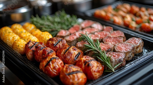 Close-Up of Grilled Meat and Vegetables Displayed on a Barbecue Platter