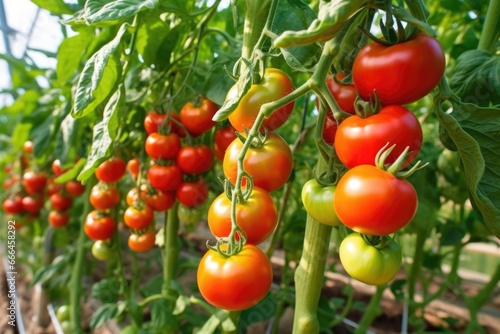 tomatoes, vine, greenhouse, closeup, juicy, fresh, agriculture, farming, organic, healthy